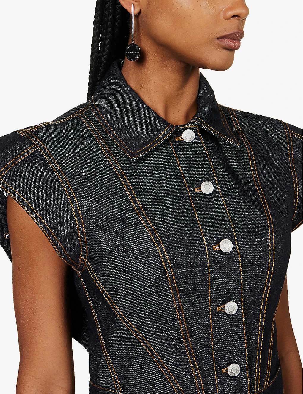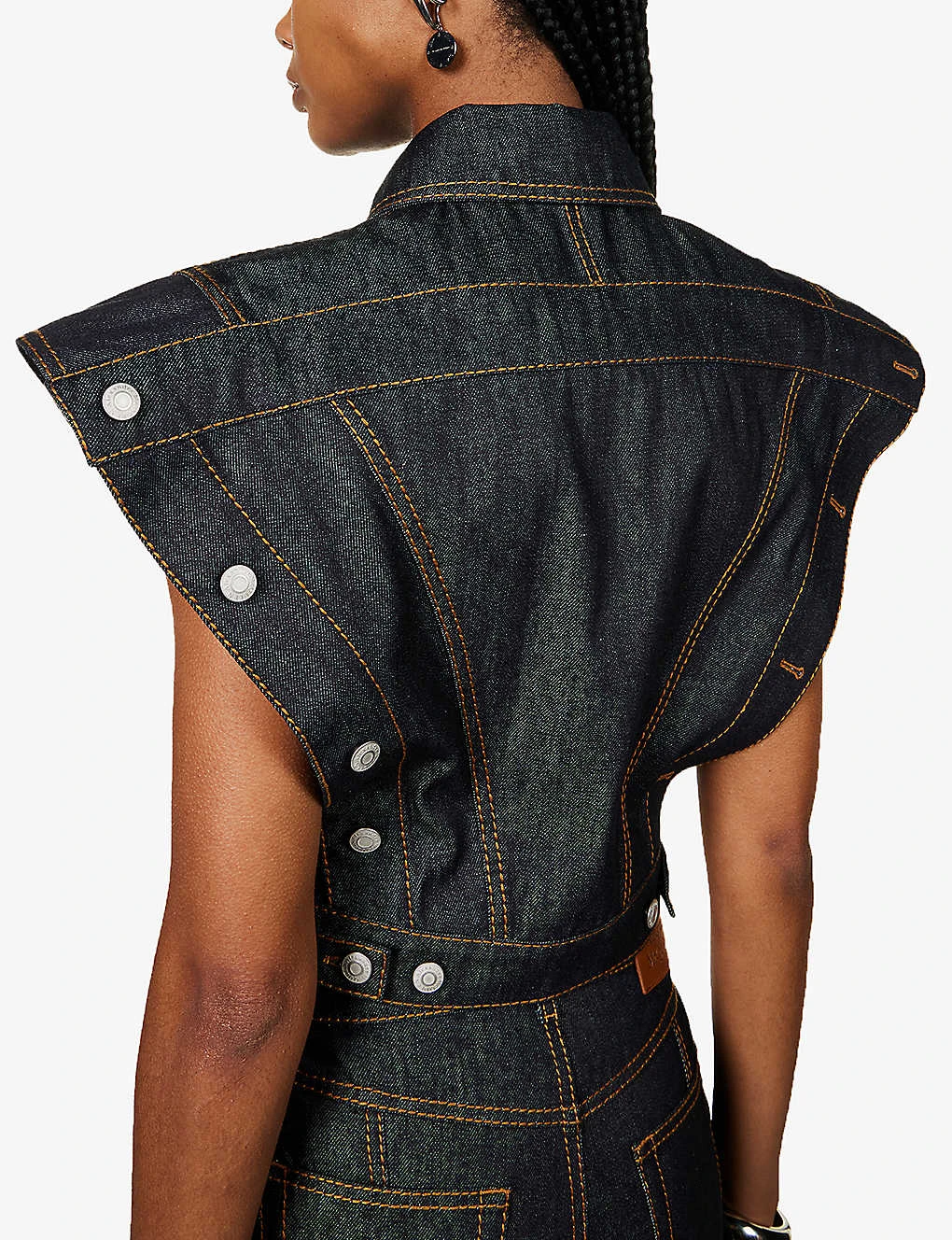 Be the first to review “Alexander McQueen Contrast-stitching Sleeveless Denim Jacket” Cancel reply