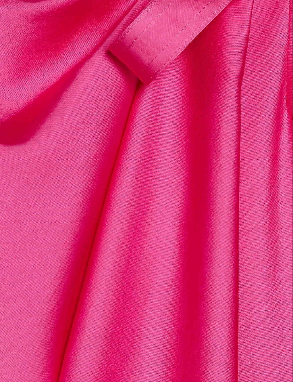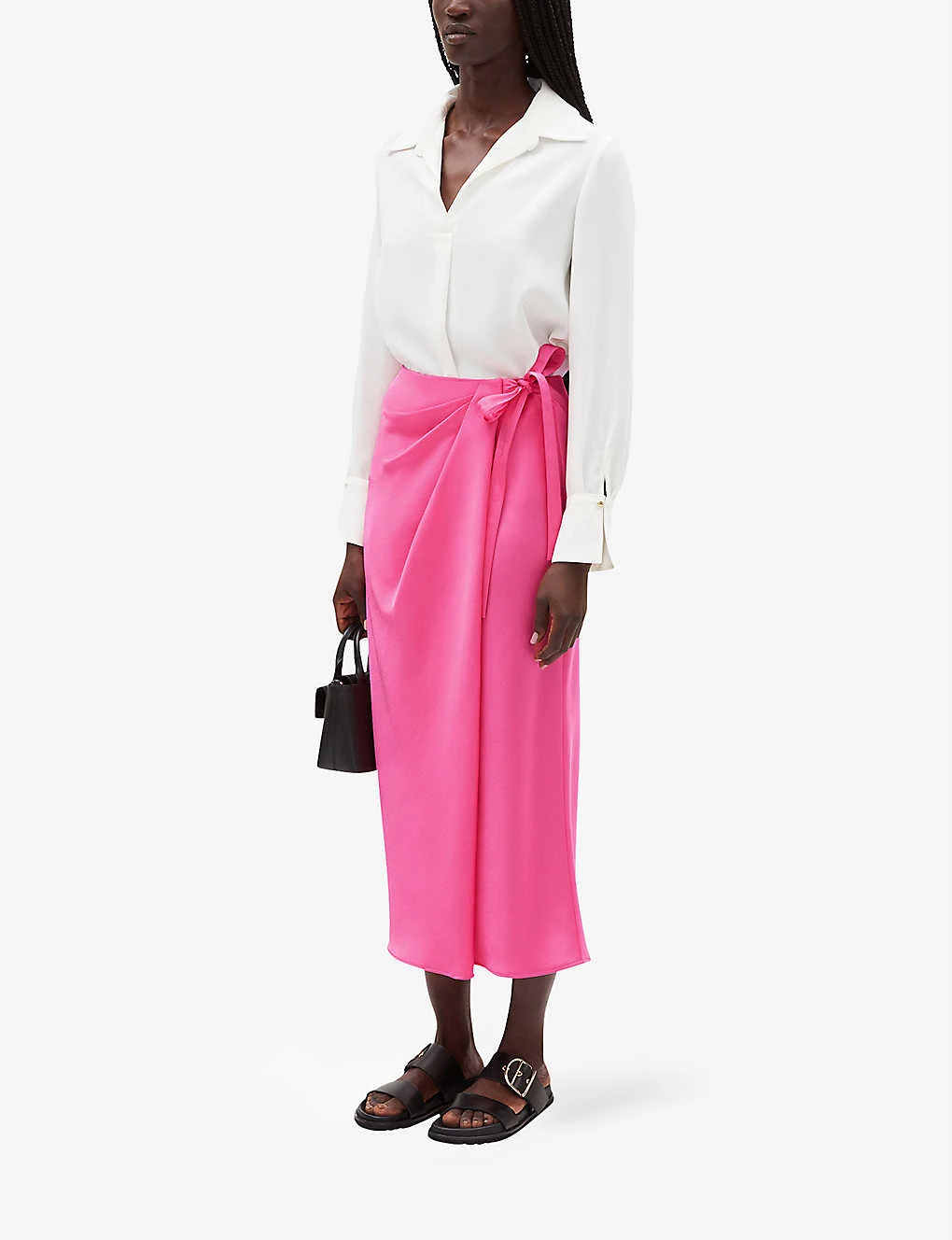 - High-rise, pleat details, bow-detail, wrap-style, midi length