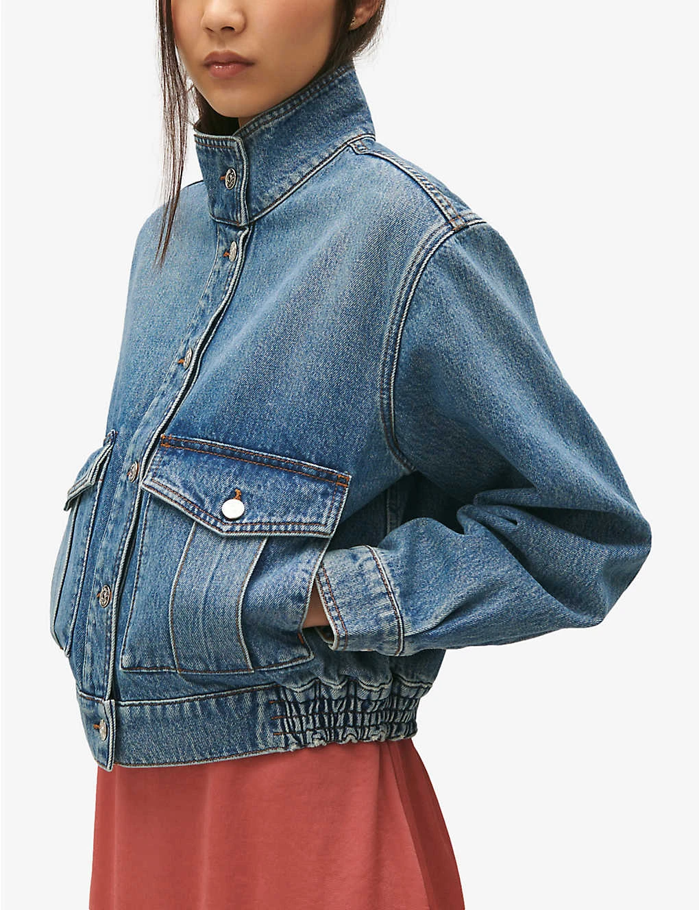 CLAUDIE PIERLOT Volume High-neck Relaxed-fit Denim Jacket