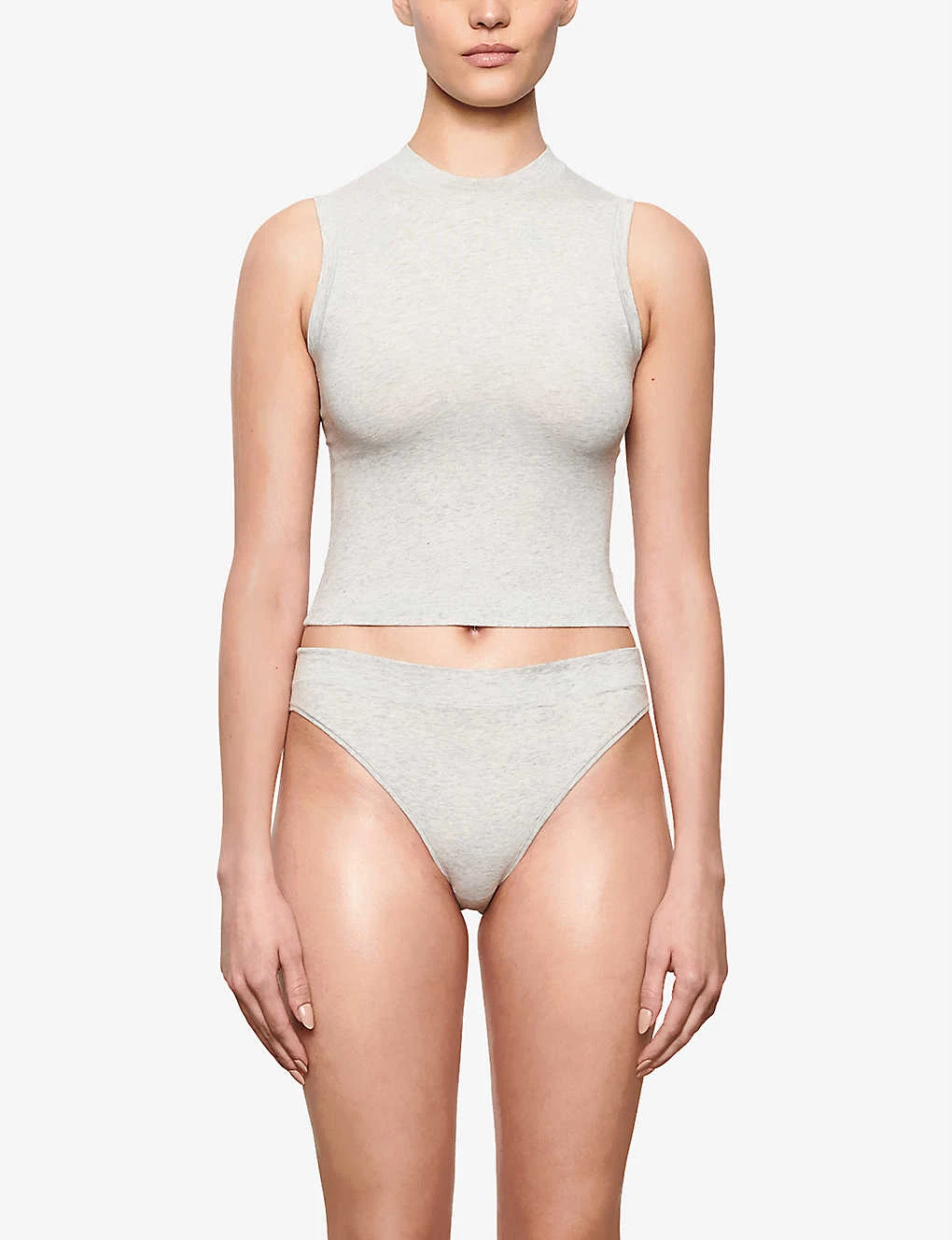 - Slim fit, mock neck, sleeveless, all-over marl weave