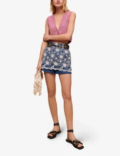 - Slim-fit, high-rise, elasticated waistband, rubberised brand badge at front, all-over purl knit
