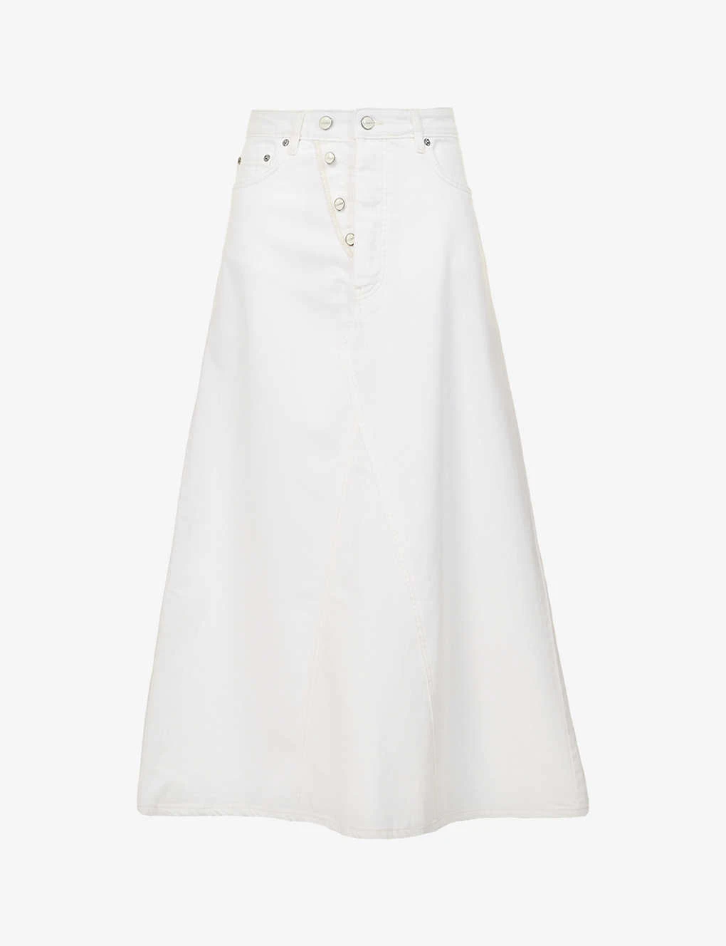 Ganni Mid-rise Logo-appliqué Organic-denim Maxi Skirt
