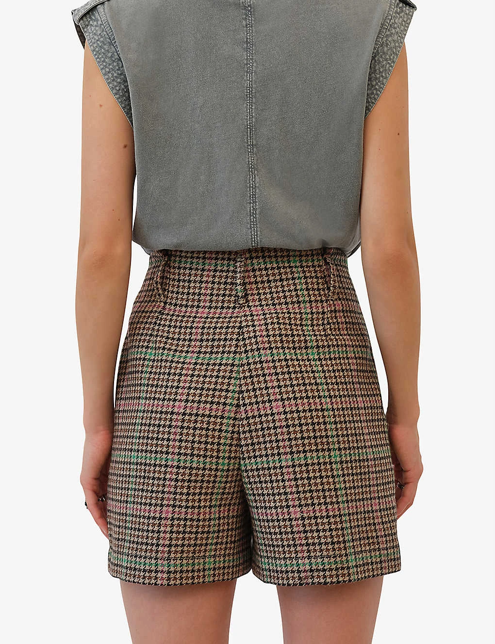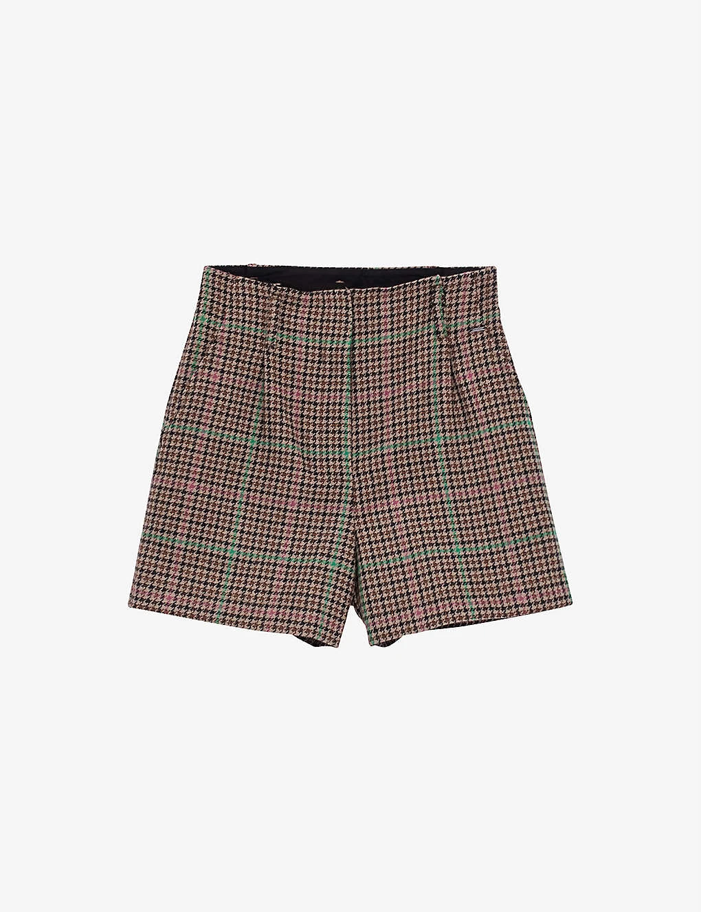 Ikks Checked High-rise Wool-blend Shorts