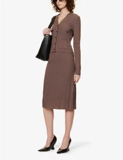 - Regular fit, high rise, structured waistband, stripe-floral pattern, fine knit, split at hem sides