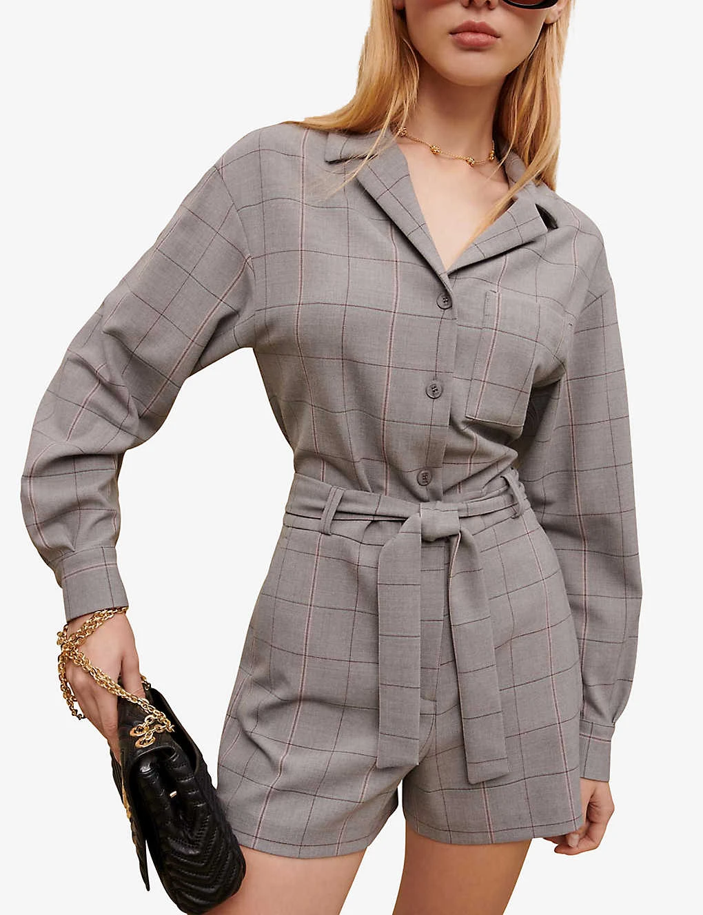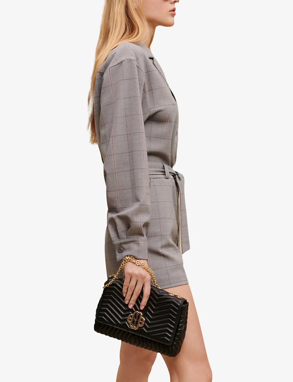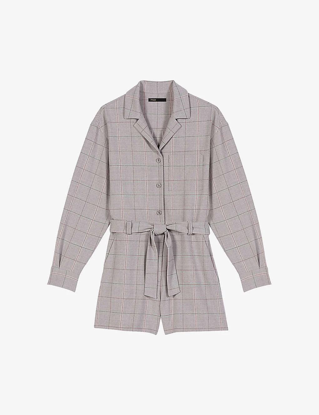 Maje Check-print Stretch Wool-blend Short Jumpsuit