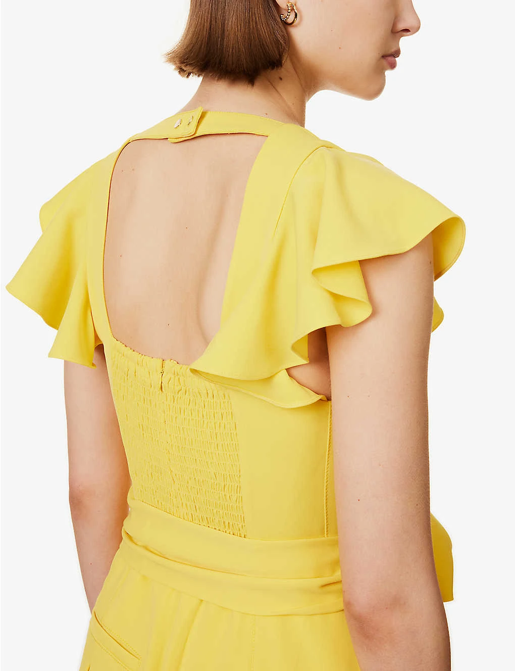 ME AND EM Frill-sleeve Belted-waist Crepe Jumpsuit