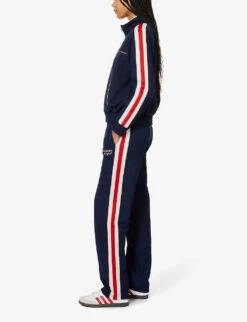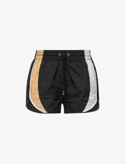 - Regular fit, mid-rise, elasticated drawstring waistband, two slip pockets at sides, contrast panels and piping at sides, brand patch at side, zipped pocket at back, partially lined