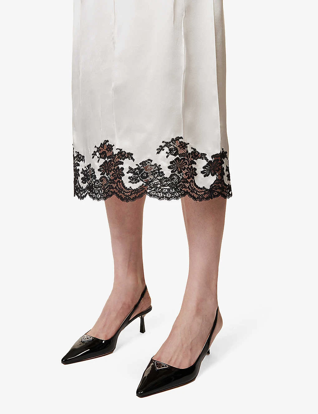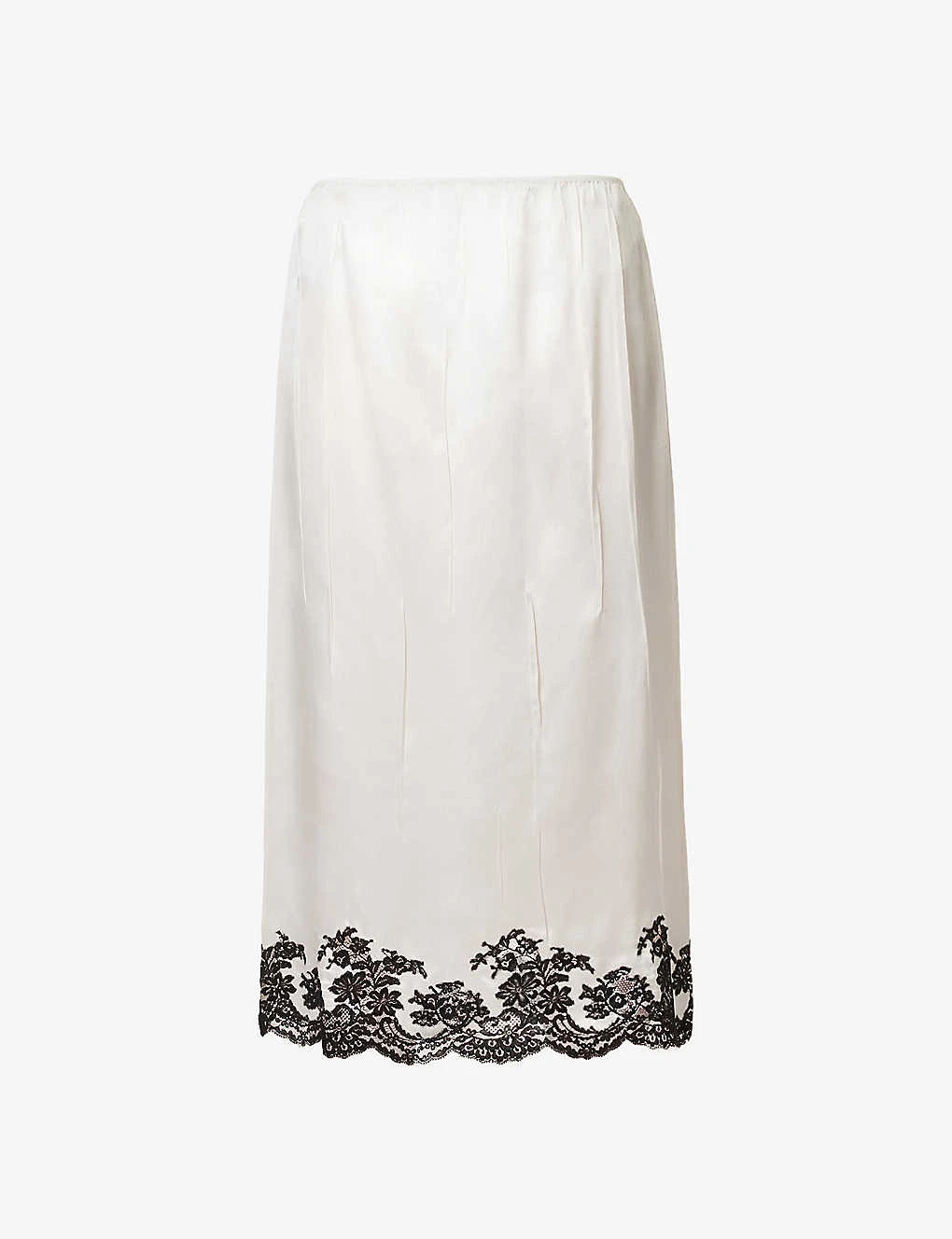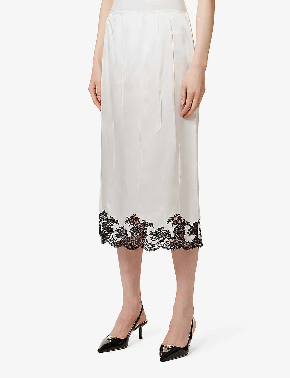 Prada Lace-trim Elasticated-waist Silk Midi Skirt