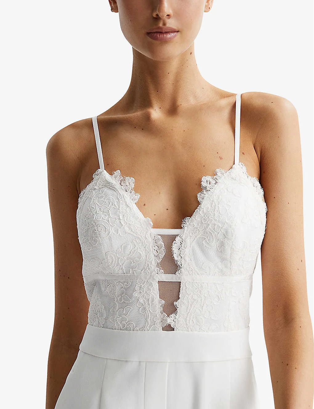 Reiss Cora Lace-bodice Stretch-woven Jumpsuit