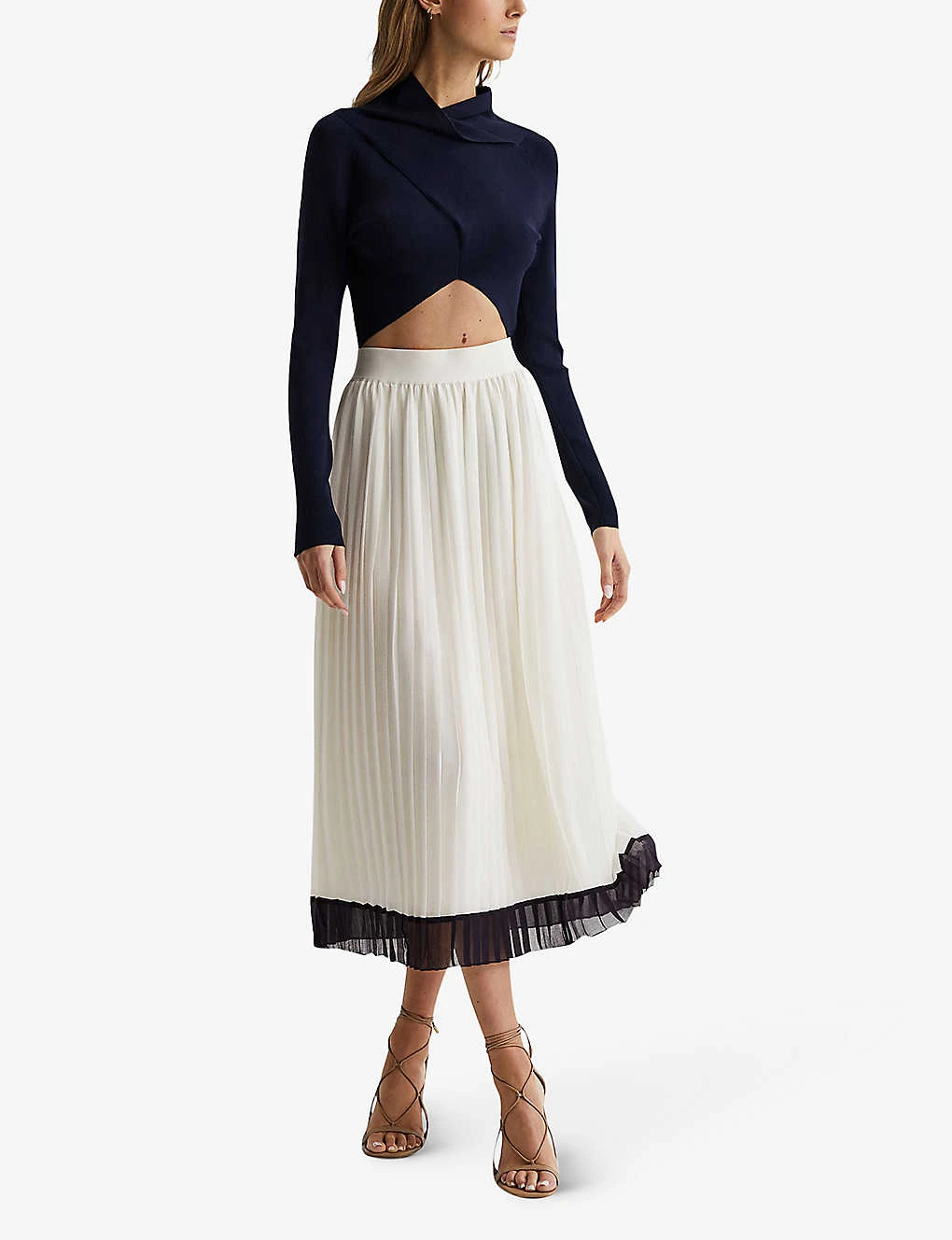 Reiss Osti Colour-block Pleated Woven Midi Skirt