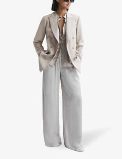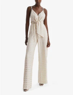 Reiss Maple Off-shoulder Belted-waist Stretch-woven Jumpsuit