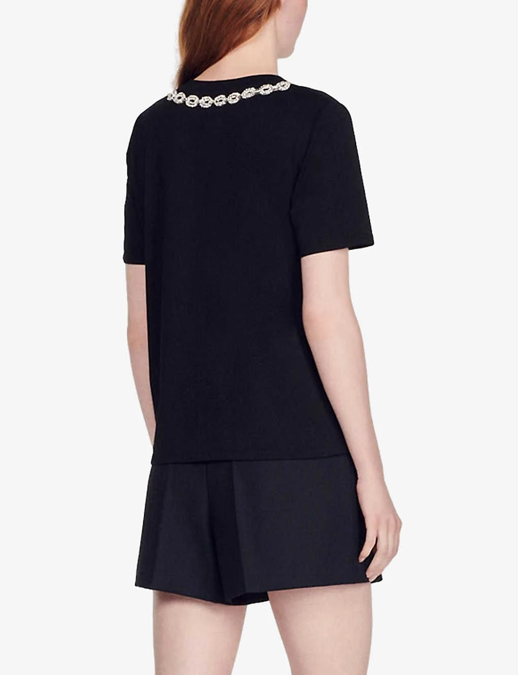 Sandro Merlin Embroidered Rhinestone-embellished Cotton-jersey T-shirt