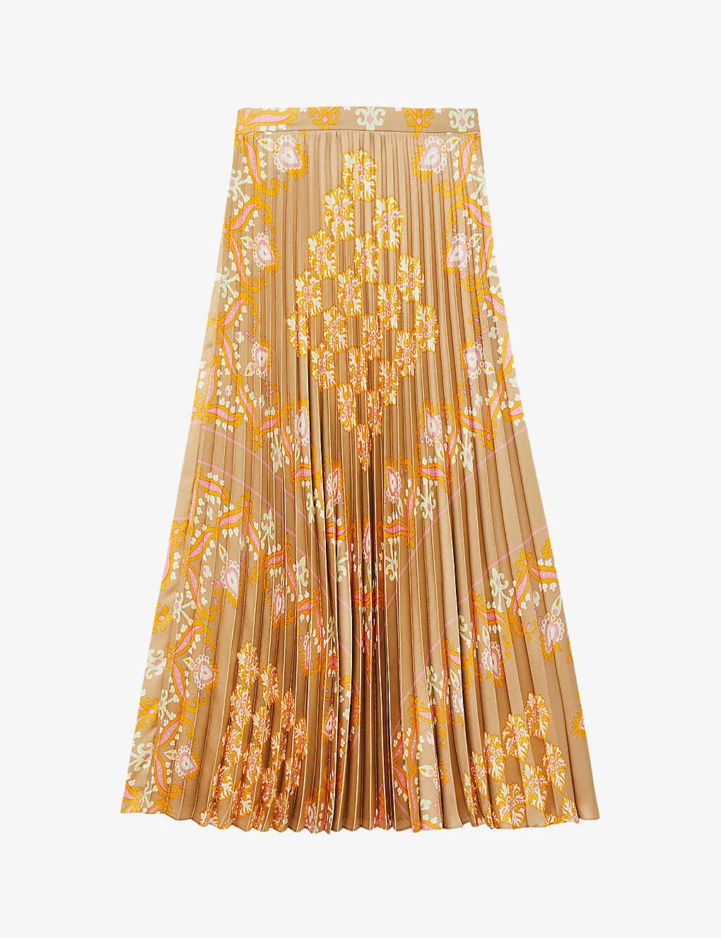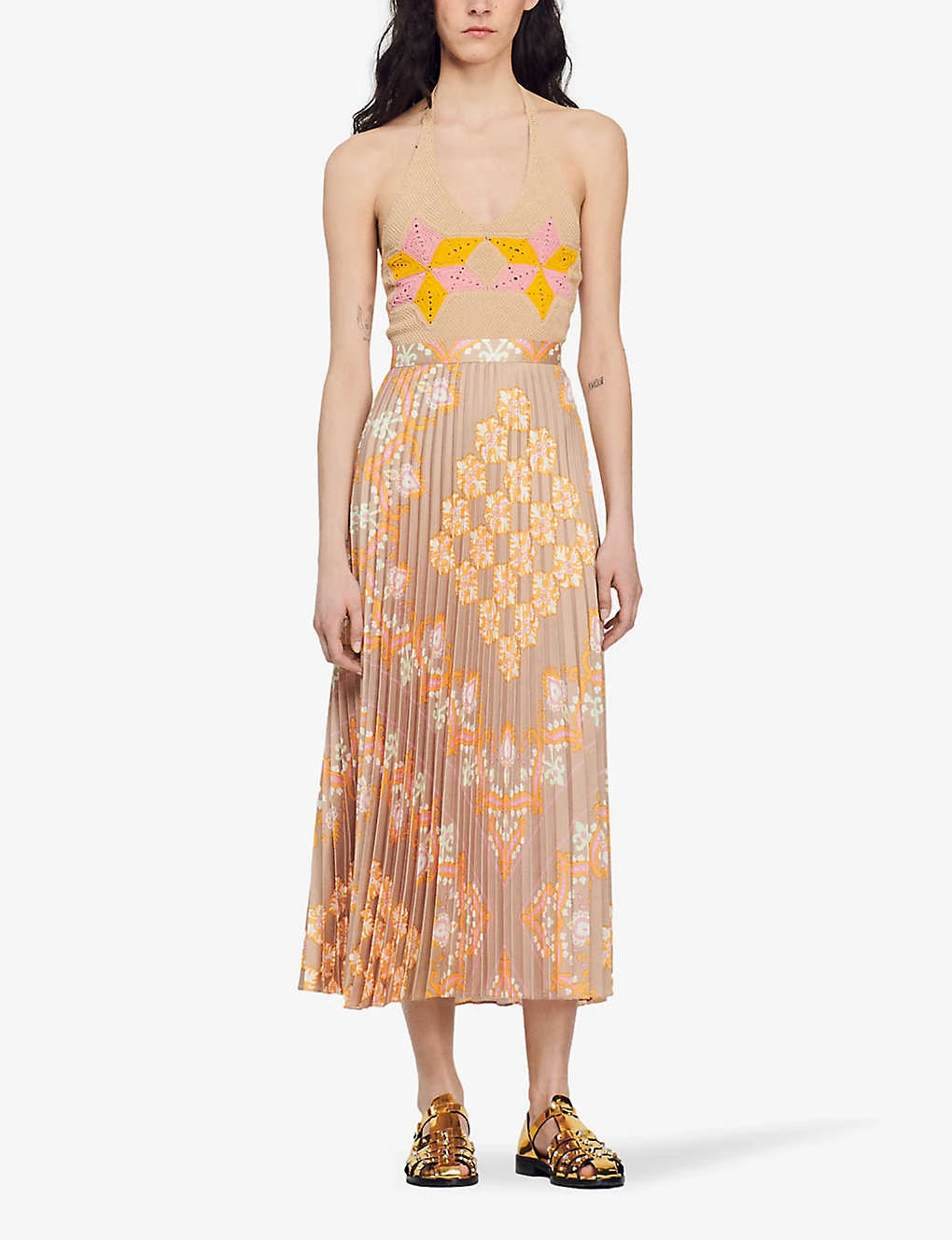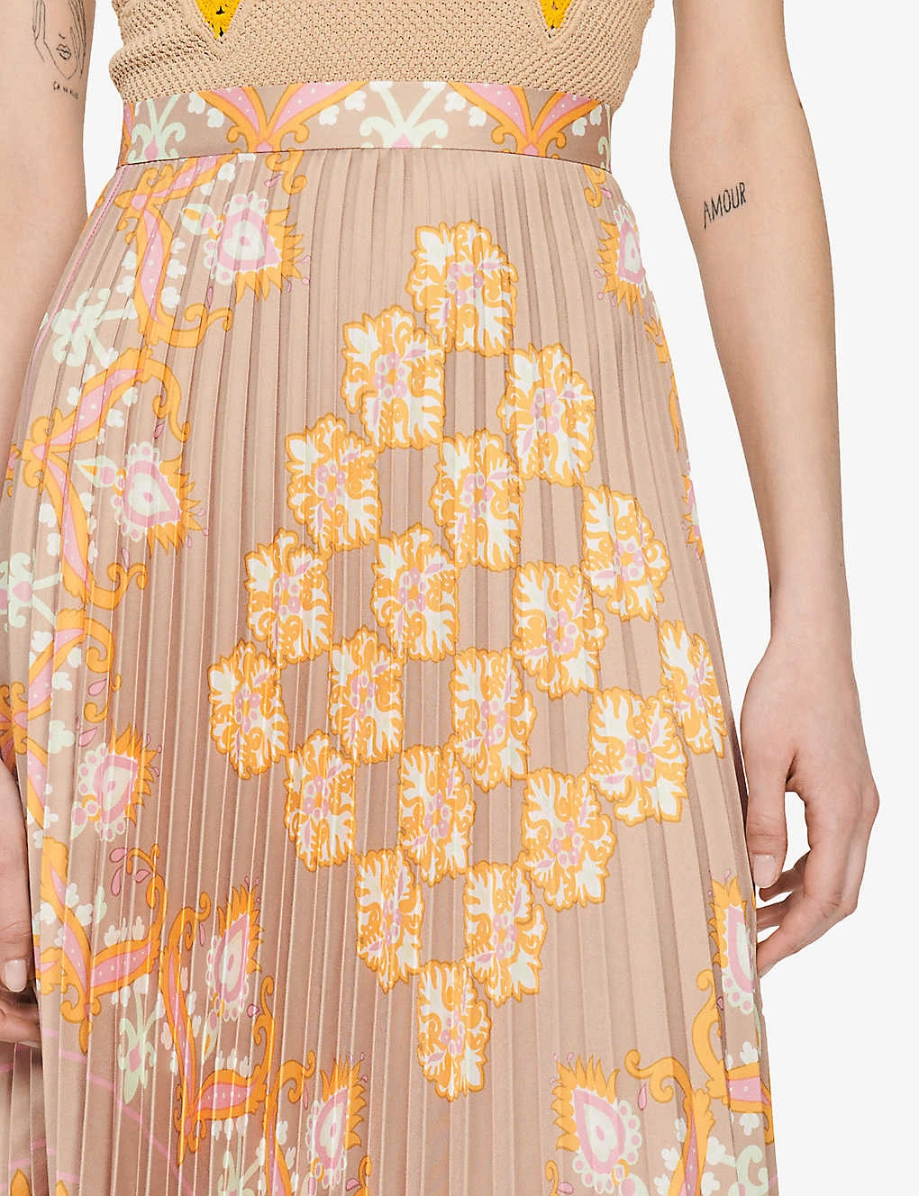 Sandro Scarf-print Pleated Recycled Polyester-blend Midi Skirt