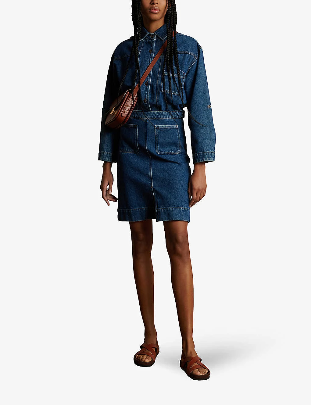 Soeur Minorque Patch-pocket High-rise Stretch-denim Mini Skirt