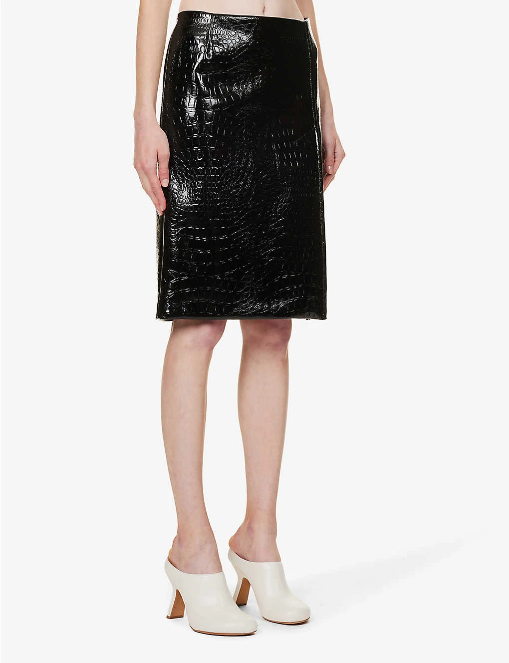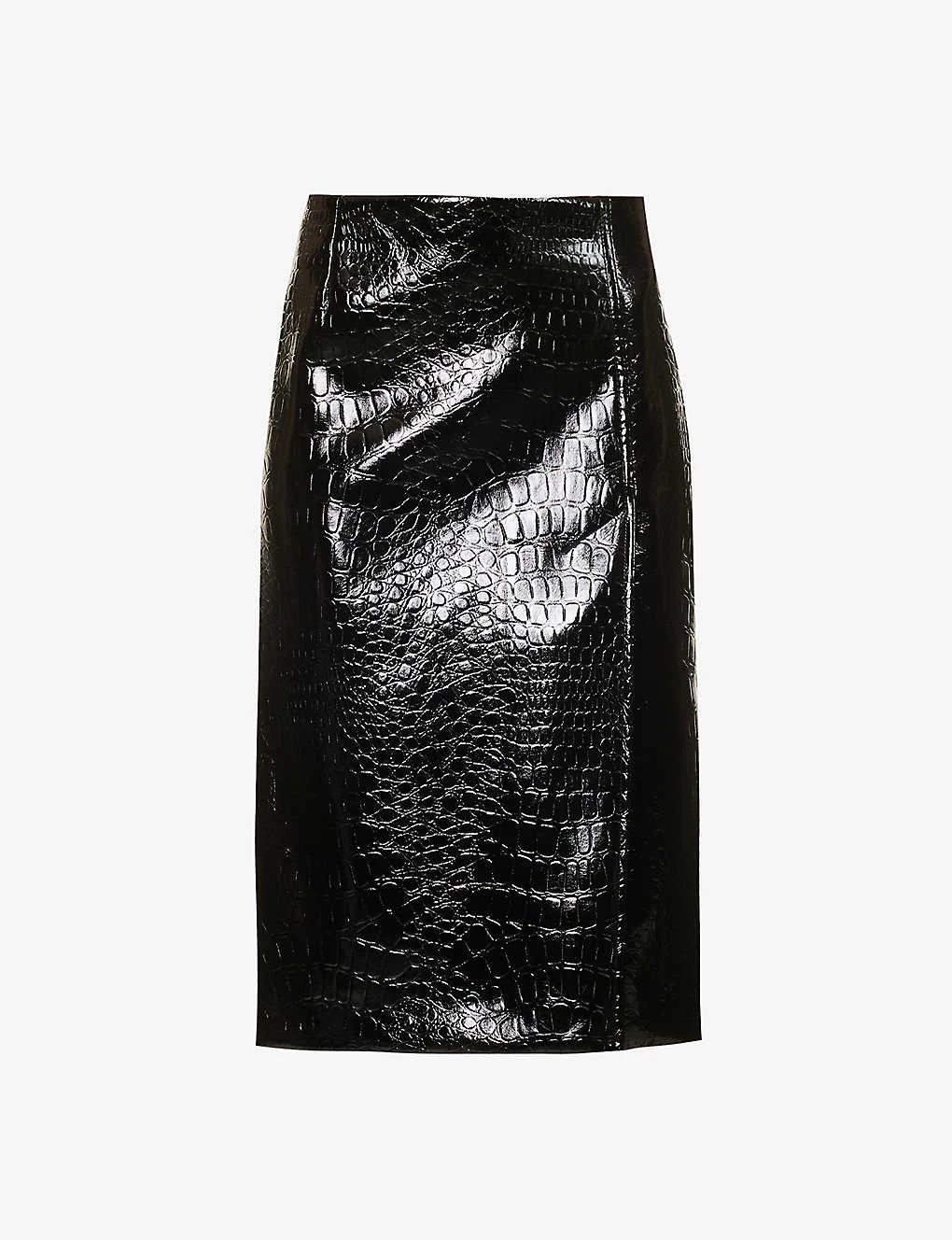 Sportmax Melinda Split-hem Croc-embossed Leather Mini Skirt