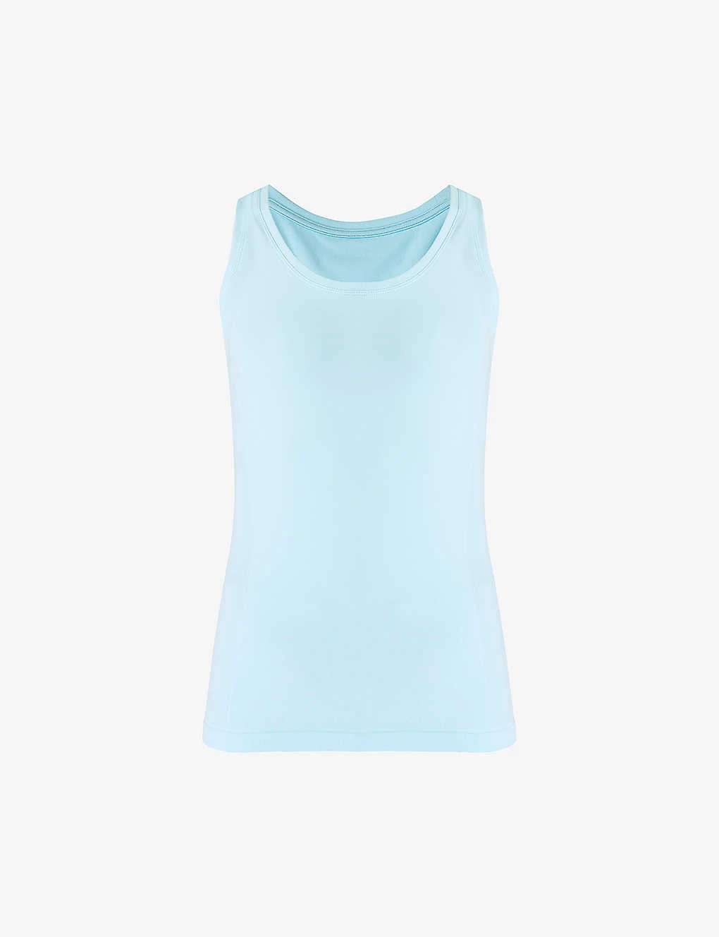 - Round neck, sleeveless, sweat-wicking, seamless, breathable, slim-fit, racer back, logo print at back