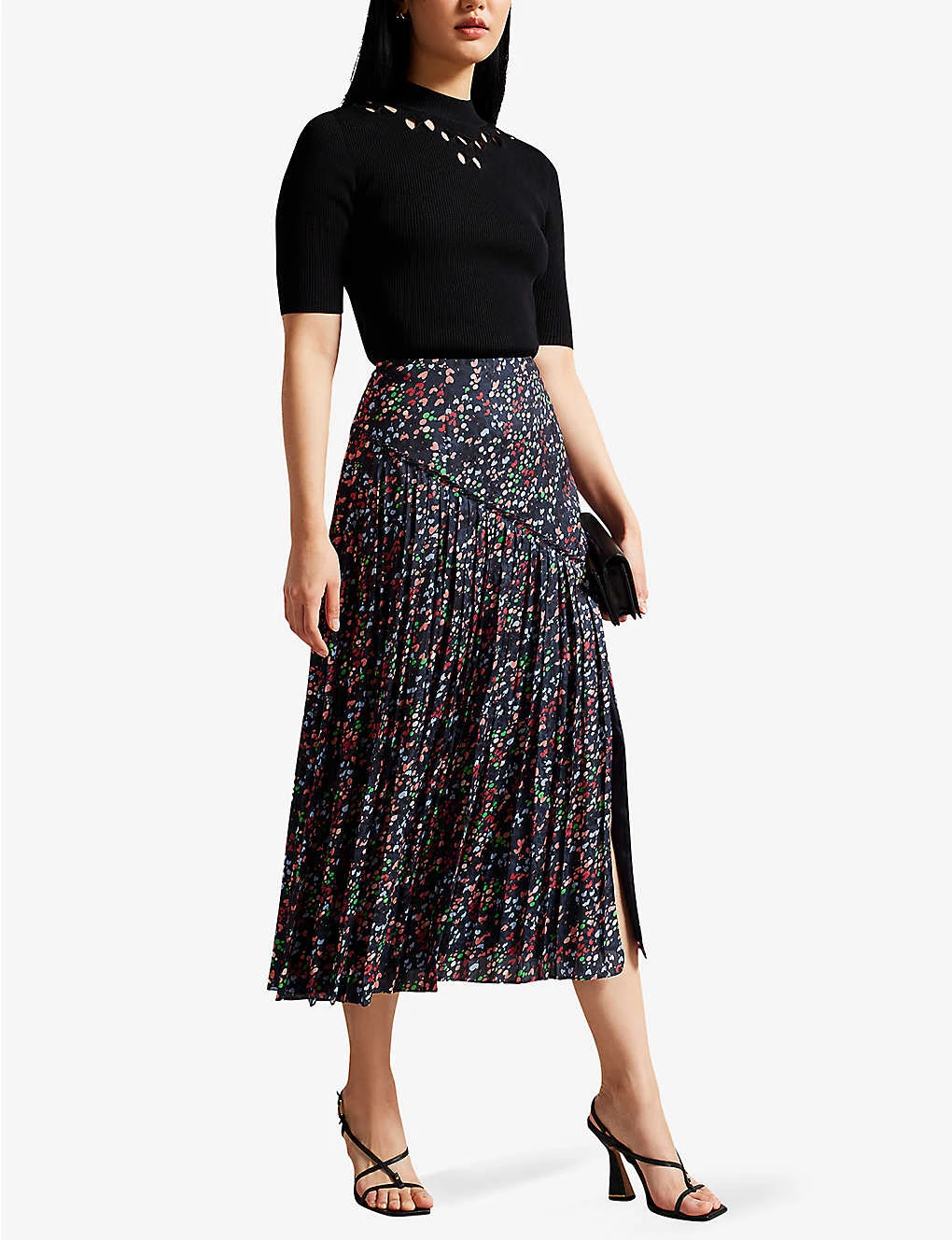 Ted Baker Israa Graphic-print Pleated Woven Midi Skirt