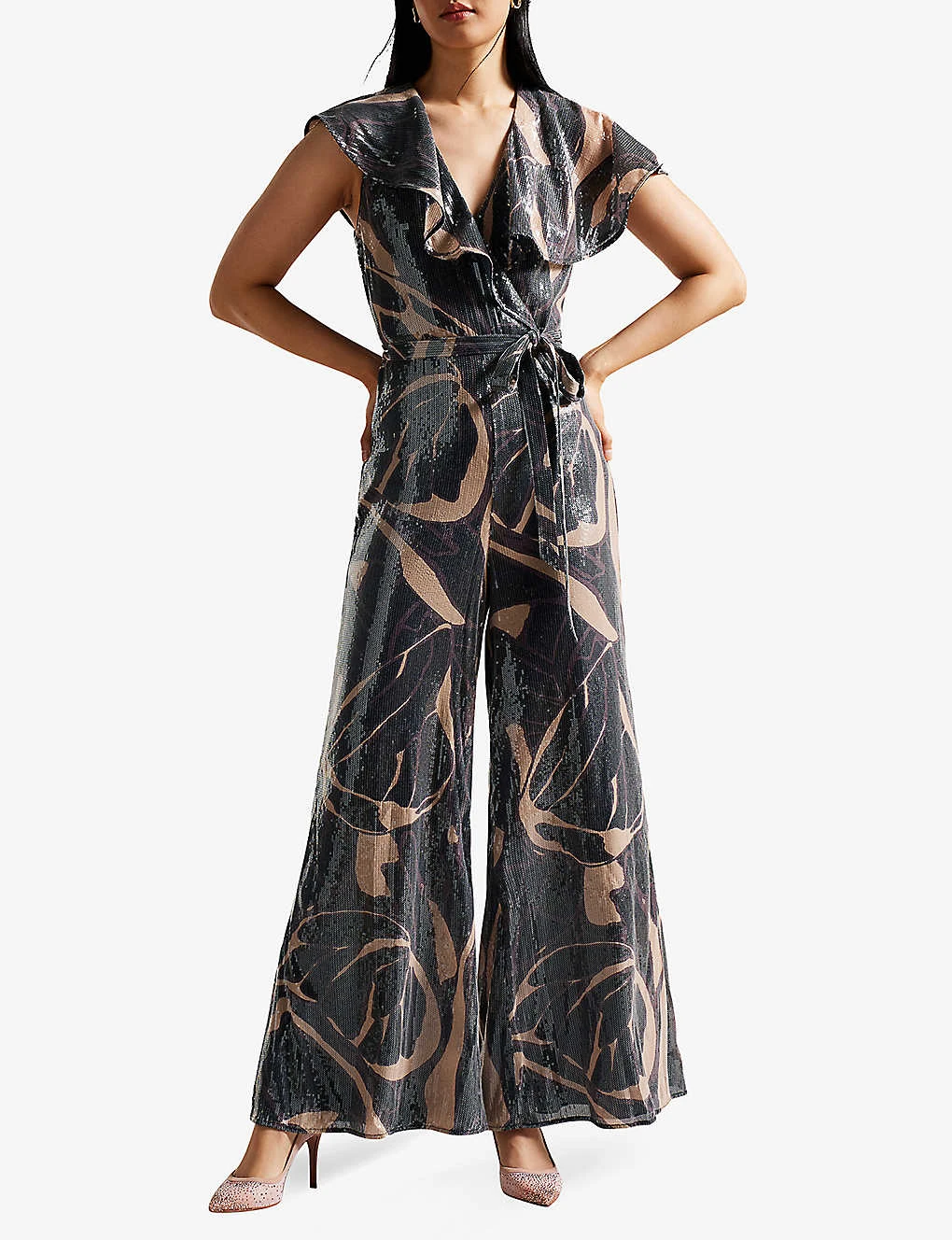 Ted Baker Printed Ruffle Sequin Jumpsuit