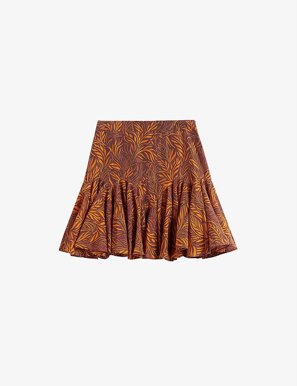 Ted Baker Staysey Botanical-print Ruffled-hem Woven Mini Skirt