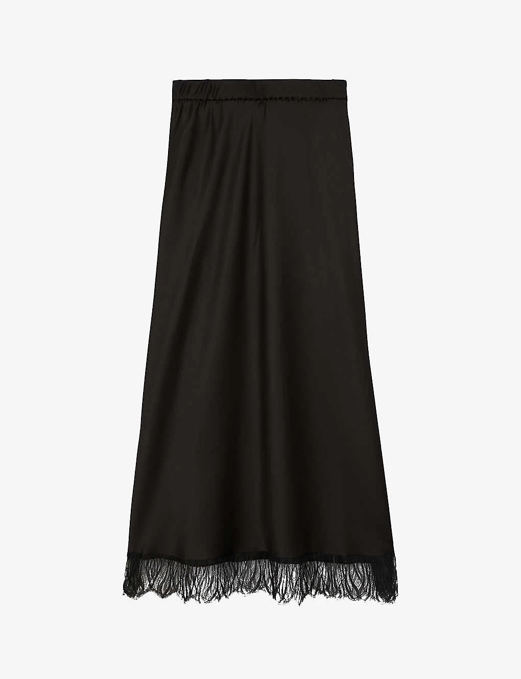 THE KOOPLES Scalloped Lace-trim High-rise Silk Midi Skirt