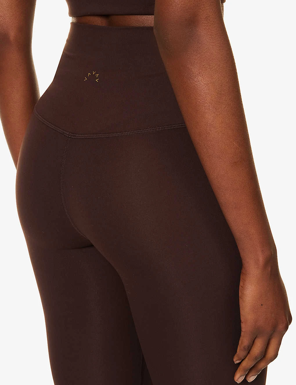 - Regular-fit, high-rise, elasticated waistband, exposed seams, brand print at back