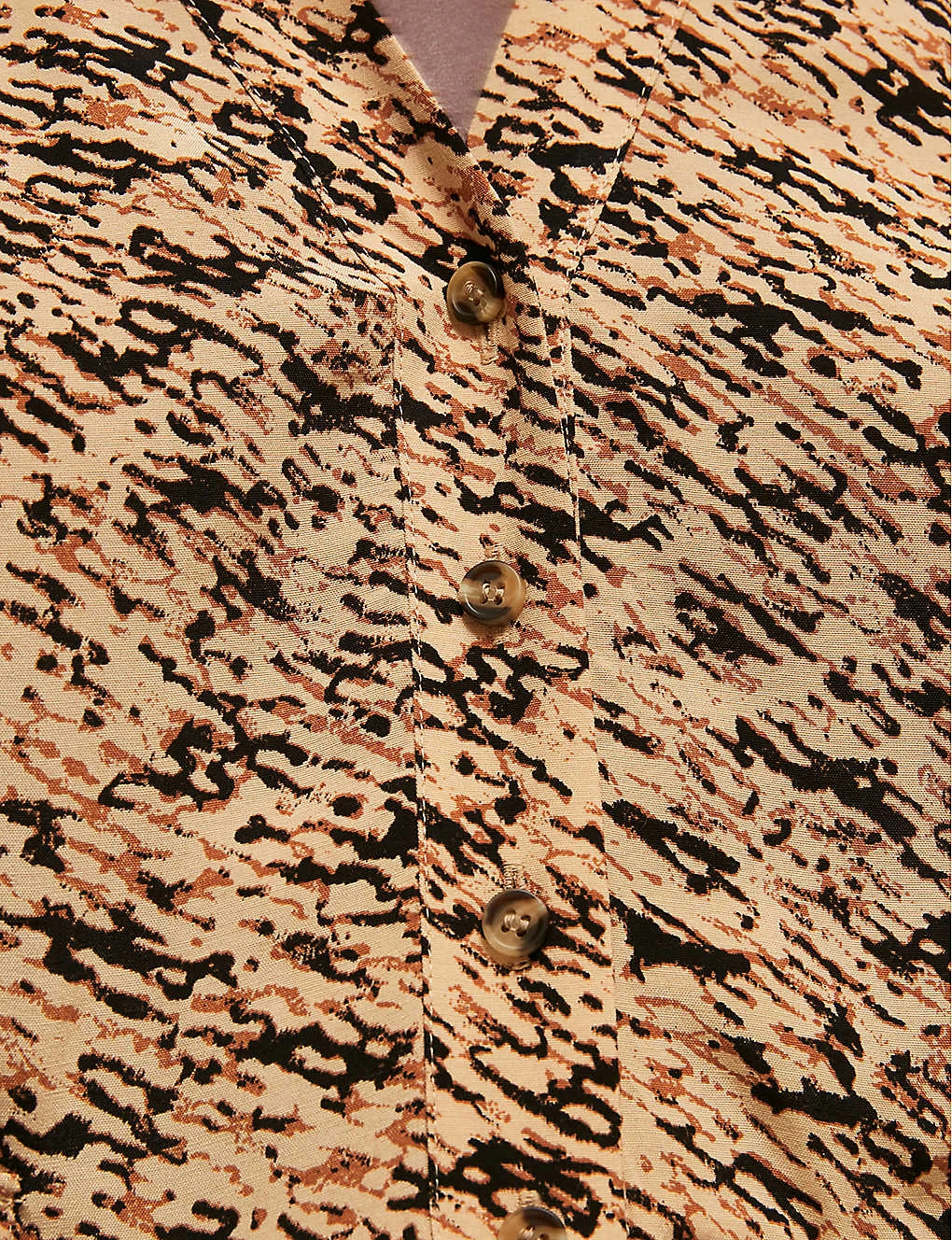 - Exposed button fastening at front