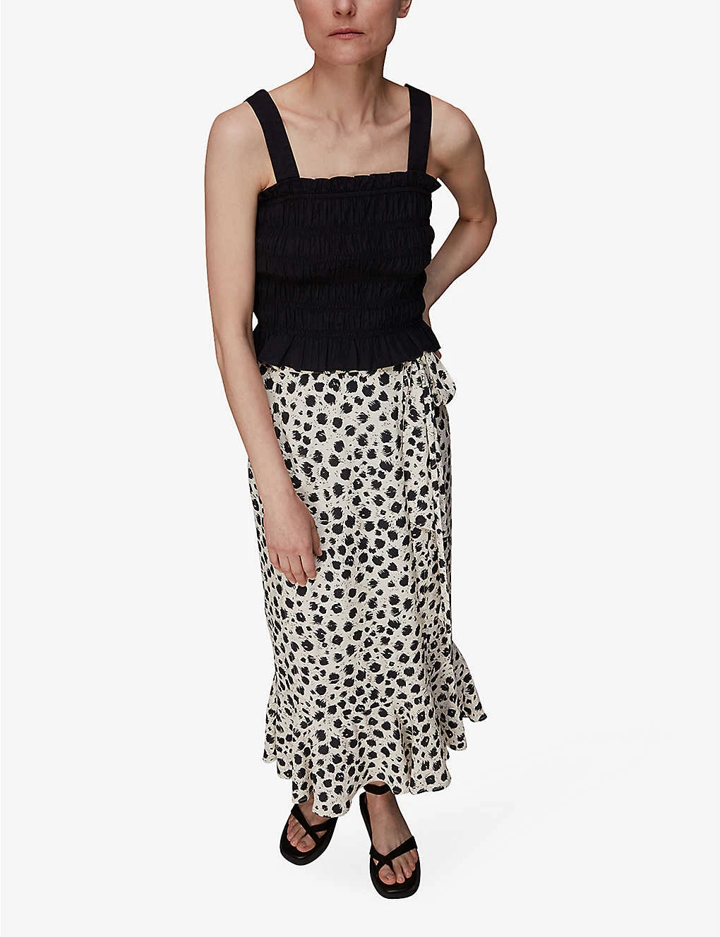 Whistles Dalmation-print Pleated Woven Midi Skirt