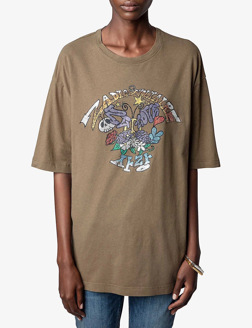 Zadig & Voltaire Suzy Crystal-embellished Cotton-jersey T-shirt